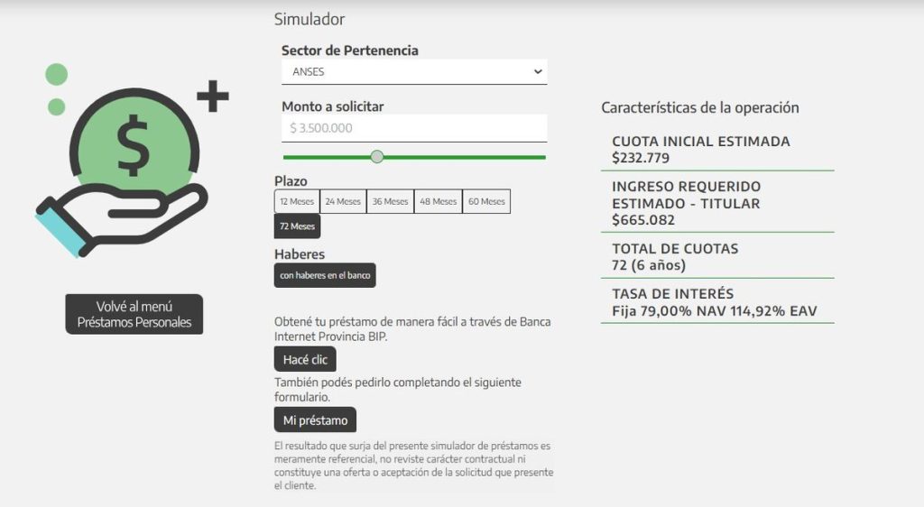 - Cuota mensual: $5.746,86 por cada $100.000 solicitados.