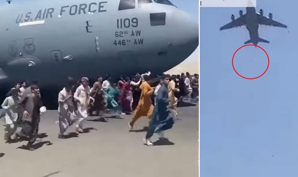 Las imágenes divulgadas en redes sociales muestran cómo decenas de personas intentan sujetarse de un avión de transporte militar estadounidense, mientras muchos otros corren por la pista del aeropuerto, algunos incluso sonriendo o saludando a la cámara. Pero otros ponen todo su esfuerzo en mantenerse sobre la nave, con el sueño de viajar como polizones y salir del país.