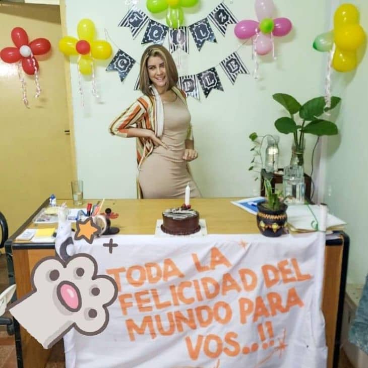La destinataria se lo tomó con humor. “Tantas demostraciones de afecto que un simple gracias queda corto. Aún así, solo me queda decir gracias totales”, expresó al posar con su torta y su pasacalle.