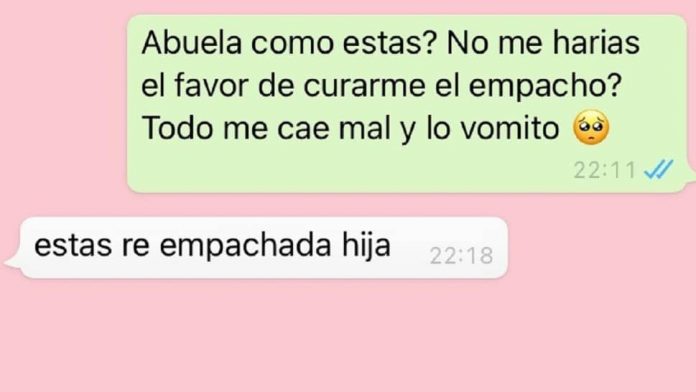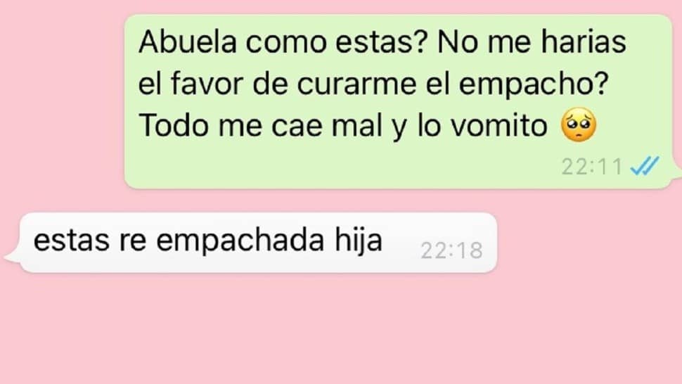 Miaytsu contó en la famosa red social, a través de una captura de pantalla de un diálogo por WhatsApp con su abuela, que desde hace algunos días se estaba sintiendo mal y rara. “Todo me cae mal y lo vomito”, le había escrito, creyendo inocentemente que se trataba de un empacho común y corriente. Y su querida abuela no dudó en ayudarla.