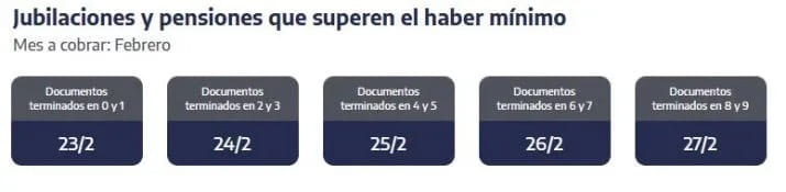 El cronograma para este sector comienza el 23 de febrero, cuando se pone en marcha la segunda etapa del pago del bono proporcional. Desde esa fecha, y según la terminación del DNI, se acreditará el complemento correspondiente a los jubilados incluidos dentro de este esquema ajustado.