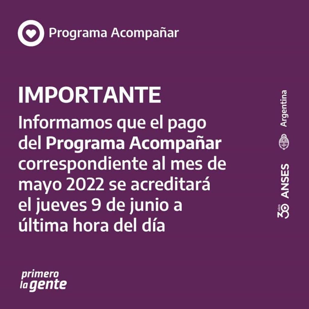 El Programa Acompañar se pagará el jueves 9 de junio, según adelantó la abogada previsional Tamara Bezares. El monto que se cobrará será de $42.240, acorde a lo que indica la tabla de aumentos.