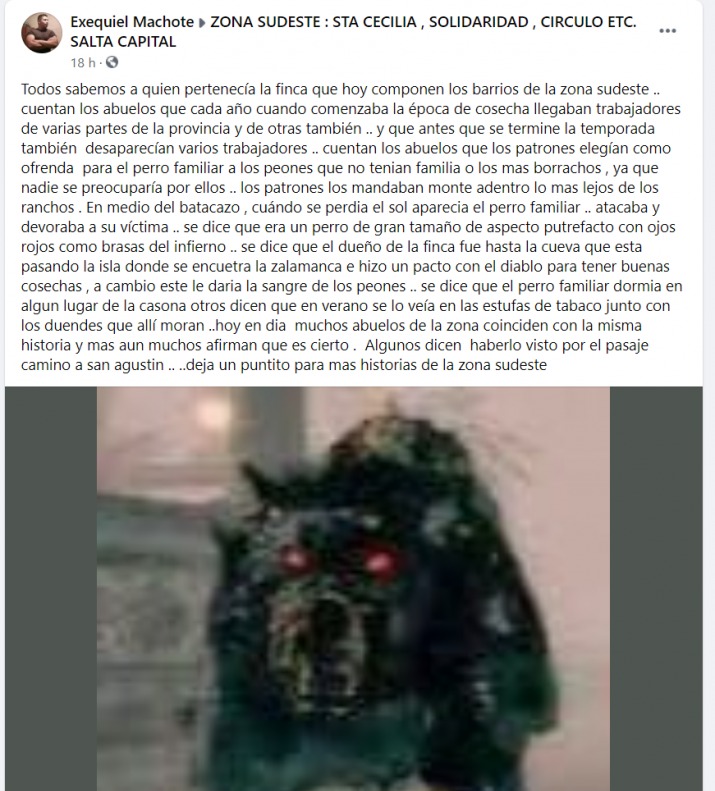 Esta vez, un vecino contó en un conocido grupo de Facebook que esta horrenda criatura demoníaca, estuvo dando vueltas por la zona que congrega muchísimos barrios humildes de la Capital.
