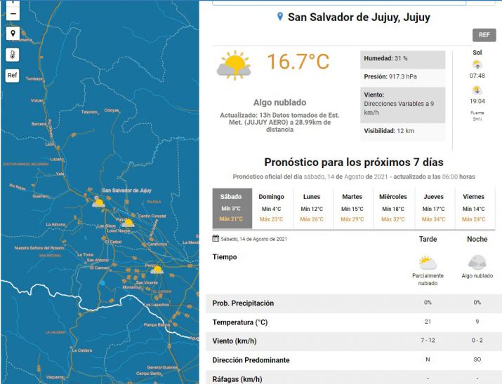 Según los modelos meteorológicos se prevén temperaturas máximas de hasta 34°C para el jueves en Jujuy y alrededores. En cuanto a las temperaturas mínimas se prevé que a partir del lunes estas no desciendan de 12°.